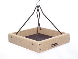 | Invite all the neighborhood birds over with the Birds Choice Recycled Hanging Tray feeder. Its simple and open design allows for easy viewing and it is constructed of recycled plastic milk jugs (poly lumber). The all screwed construction, plated deck screws, fully routed edges, and material choice means that it will last year after year. Installation is easy as it comes complete with collapsible powder-coated steel rods. All you have to do is hang, fill and enjoy. A metal seed tray keeps seed dry and healthy.