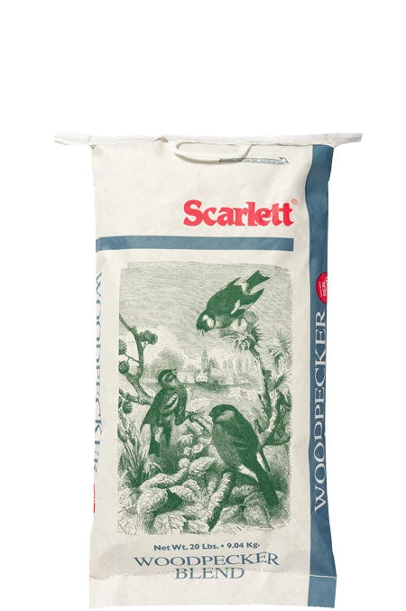 This Nut & Fruit blend contains: Split Peanuts, Tree Nuts, Corn, Sunflower Chips, Raisins, Pumpkin Seeds and Dried Cranberries. Woodpeckers shouldn’t always have to work so hard for their meal! This blend is the perfect snack. It comes in 4 pound poly bags or 20 pound paper bags.