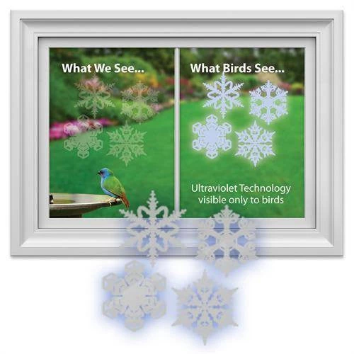 | Millions of birds die each year when they fly into windows. Help slow down this loss of life by using these high-tech decals. WindowAlert decals can be used on any window in your home or business. Every decal creates a brilliant reflection of ultra-violet sunlight that the birds can see. The ultraviolet light however is 100% invisible to the human eye while glowing for wild birds. These decals help our feathered friends see the windows before hitting the glass. WindowAlert decals are static-cling; they easily apply and peel off glass. These decals are approximately 4 inches wide and should be placed a minimum of one every 3×3 foot section of glass. Decals come four per envelope. Available in four patterns. |